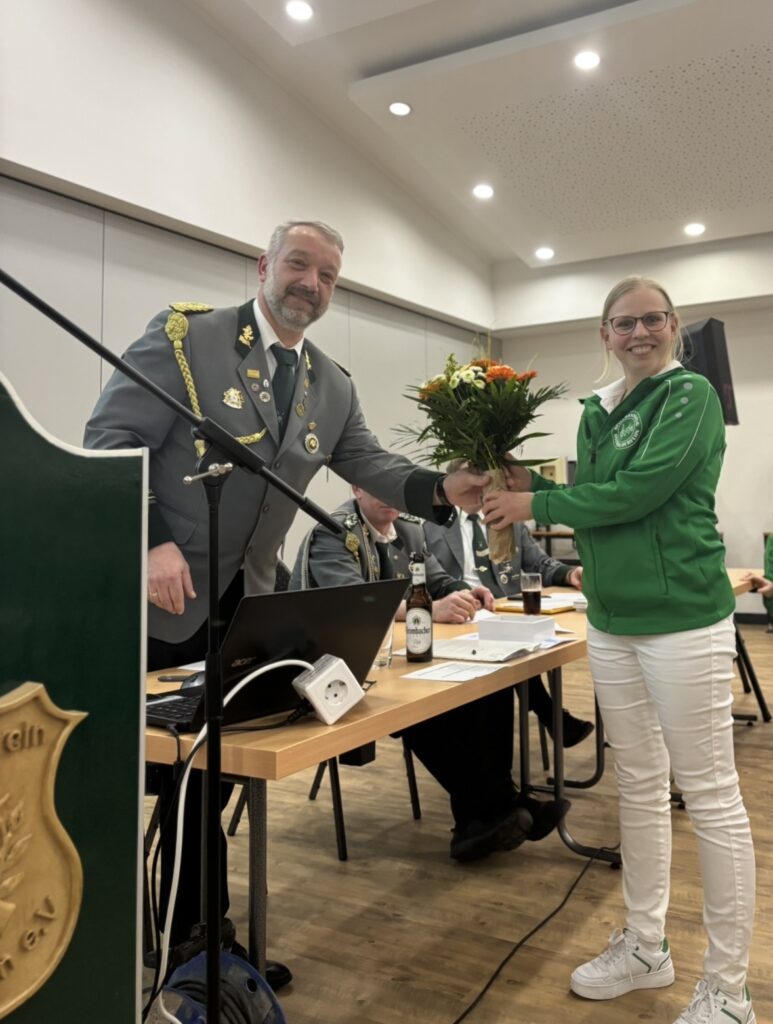 Der Schützenverein dankte Anneke Klaaßen herzlich für ihr großes Engagement und die geleistete Arbeit in der Spielleitung des Spielmannszuges. Umso erfreulicher ist es, dass sie dem Verein weiterhin erhalten bleibt und künftig als Jugendvertreterin tätig sein wird.