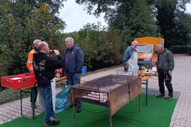 Nach drei Stunden Sammeln gab’s beim Vereinsheim an der Kirchstraße eine wohlverdiente Stärkung vom Grill. Danke an die Gemeinde Ostrhauderfehn fürs Mithelfen und Brutzeln!